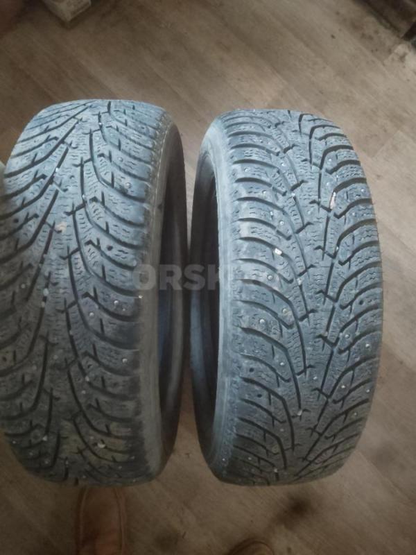 Продам б/у комплект зимних шипованных шин 205/55/r16: три баллона Нокиан Хакка 5, один Сайлун Айс Бл