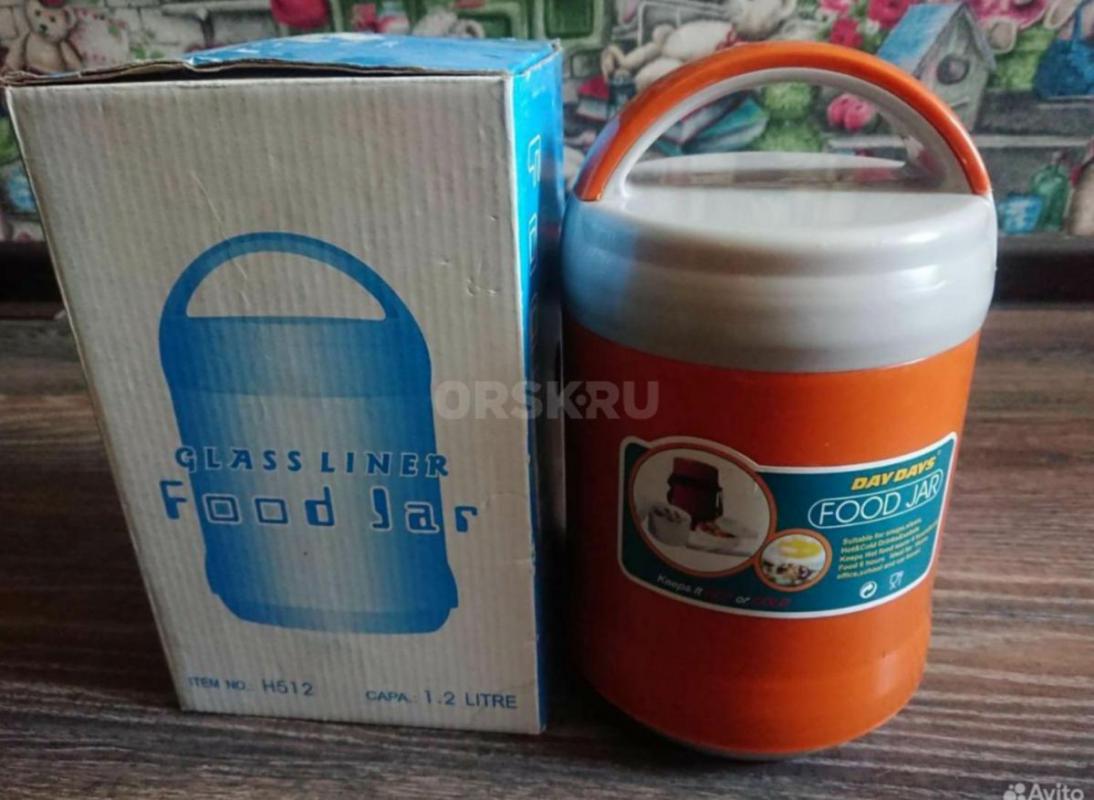 Термос с двумя контейнерами, ложечка в крышке.