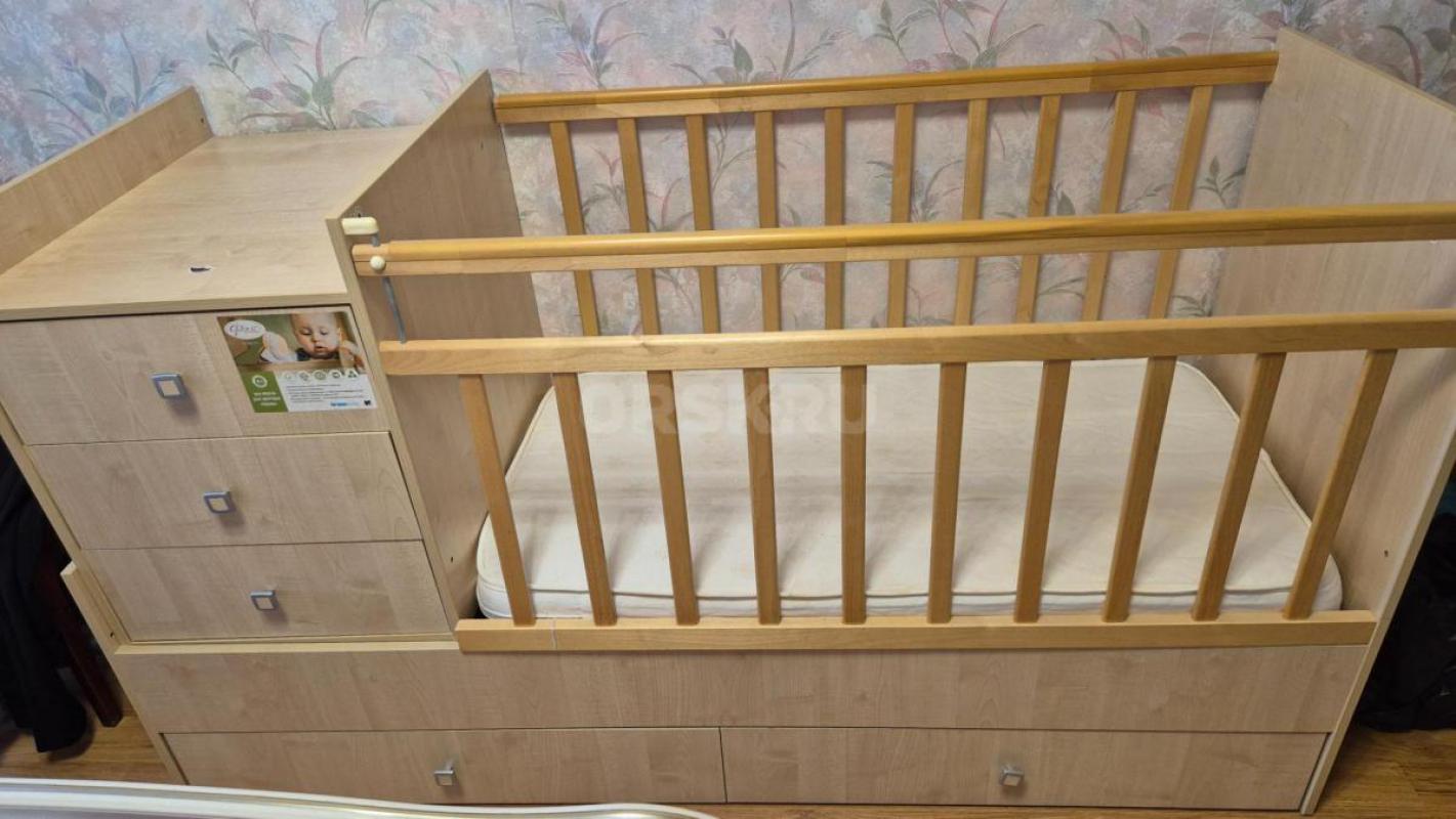 Продам детскую кровать трансформер с комодом и выдвижными ящиками внизу.