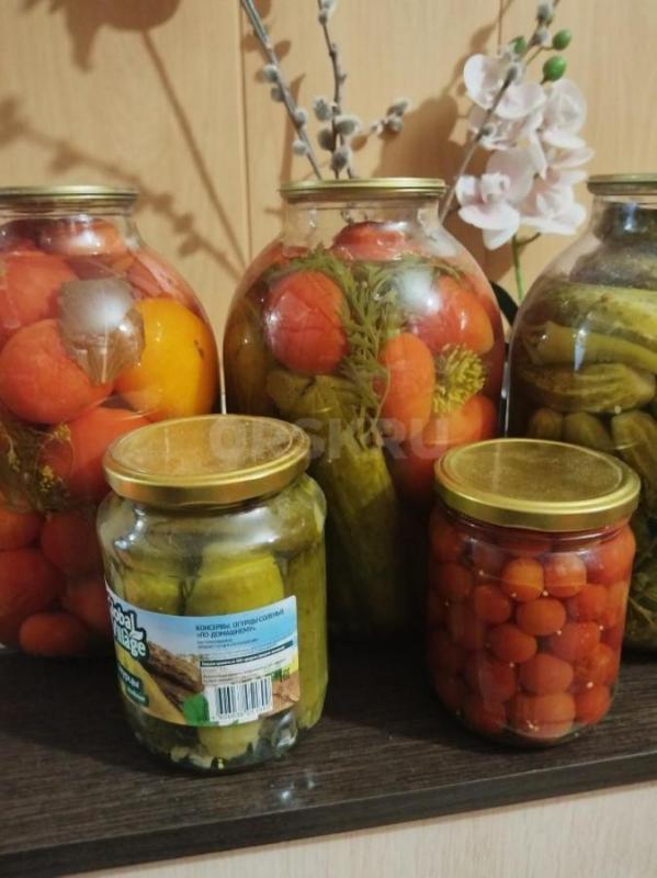 Продам консервированные помидоры, огурцы, ассорти 3 -х литровые банки по 250 рублей.