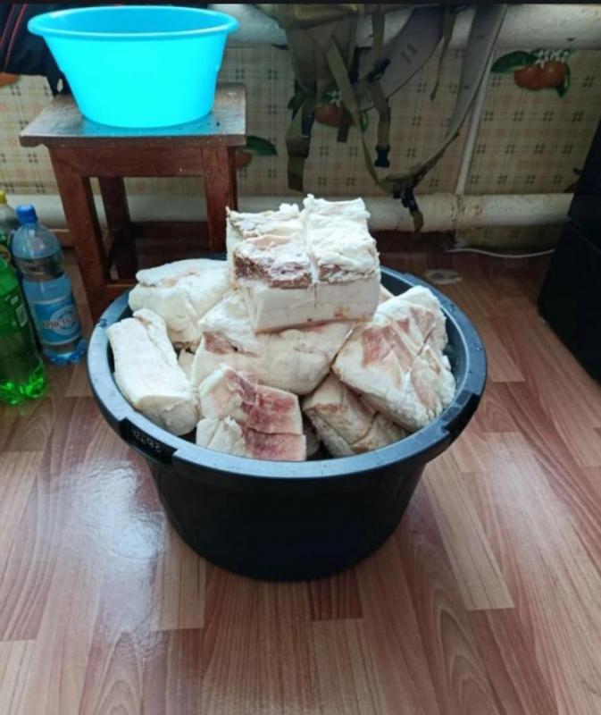 Сало солёное прошлогоднее, хранилось в морозильнике.