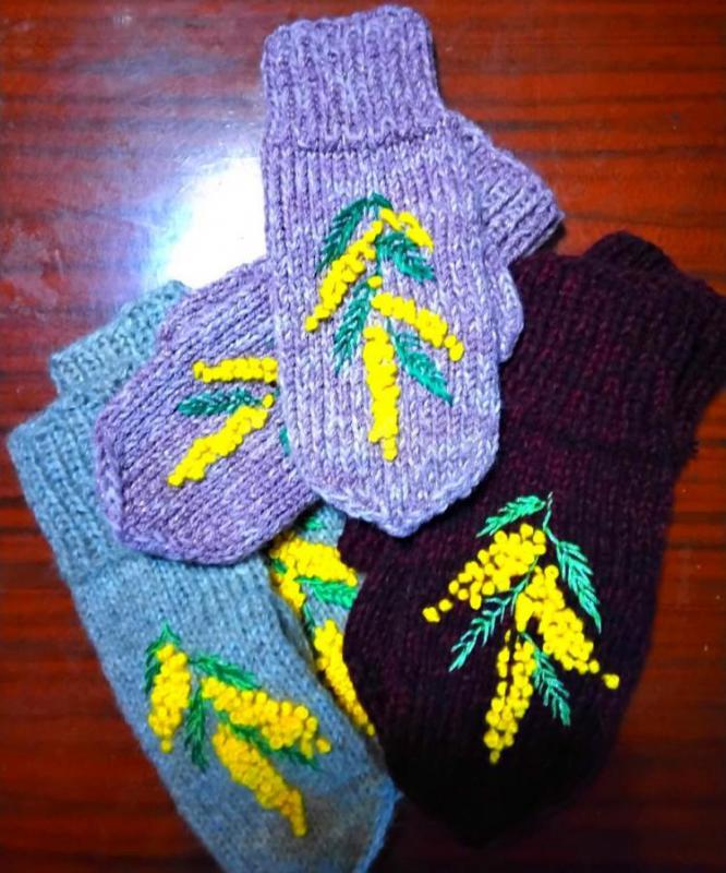Варежки с ручной вышивкой Полушерсть + мохер Район ул Строителей