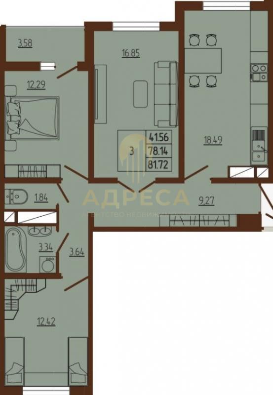 3-комн. квартира