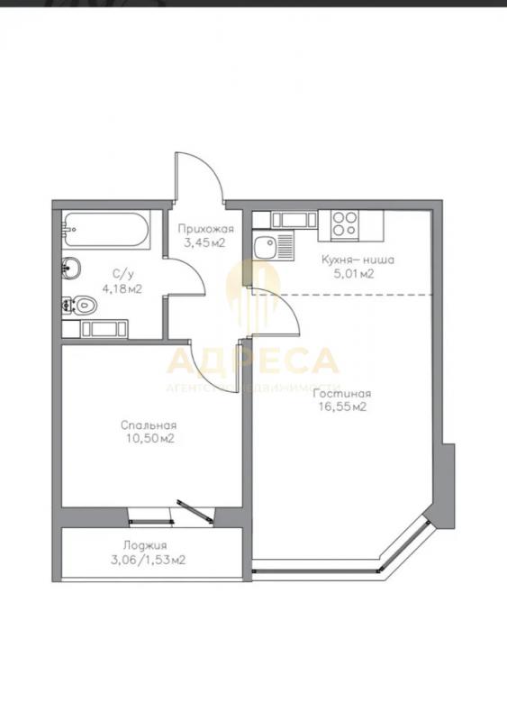 Общая площадь 42.80 м²