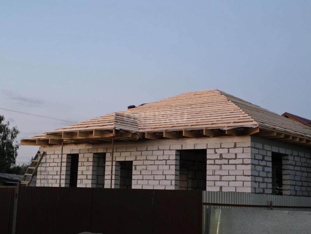 Бригада строит дома из блоков, пеноблоков.